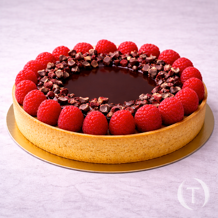 Tarte framboise chocolat, bleuets – pour 8/10 personnes